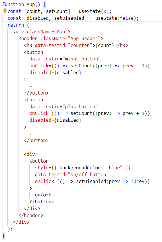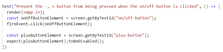 on/off 버튼을 클릭 시 -,+ 버튼을 disabled 시켜보겠다.