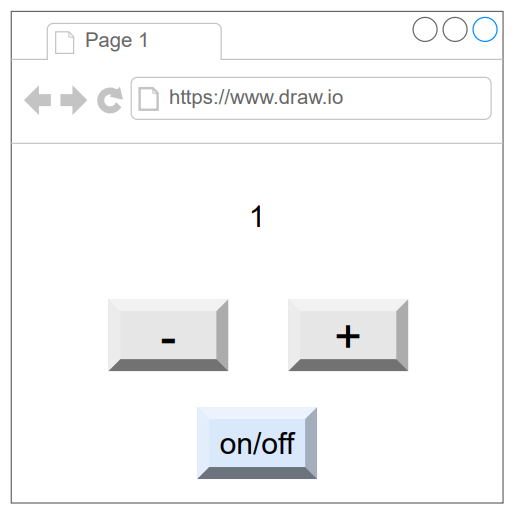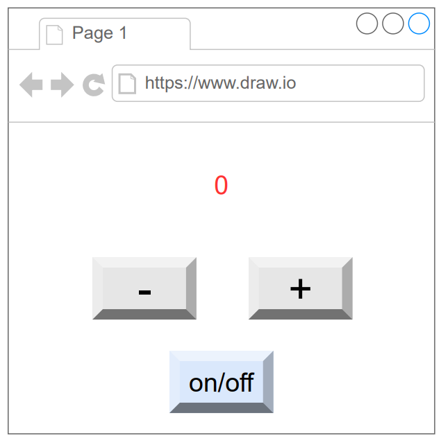 +, -, 그리고 on/off 버튼이 있다. 거기서 +를 누르면 숫자가 올라가고 -를 누르면 내려갑니다. 그리고 on/off 버튼(푸른색)을 누르면 +,- 버튼이 작동을 안하고 색깔이 변하는 간단한 앱을 만들어 보겠다.