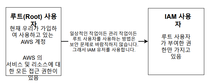 AWS 리소스에 대한 액세스를 안전하게 제어할 수 있는 웹 서비스이다. IAM을 사용하여 리소스를 사용하도록 인증(로그인) 및 권한 부여(권한 있음)된 대상을 제어한다.
