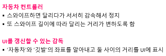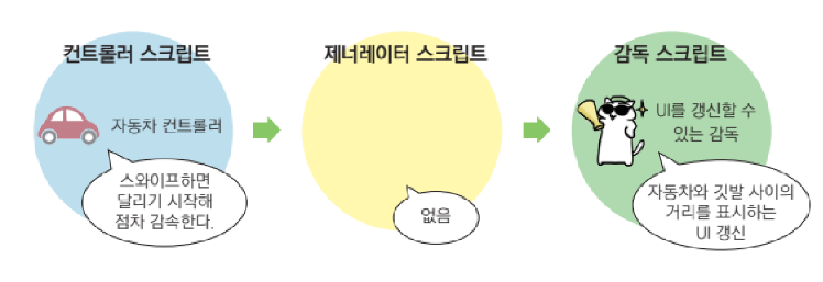 자동차 컨트롤러 → X→ 감독 스크립트(UI 갱신)