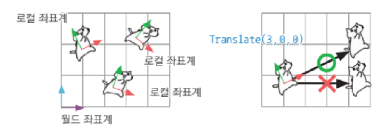 -Translate 메소드를 사용하면 이동방향은 로컬 좌표계로 계산