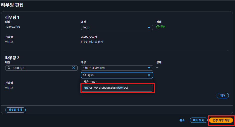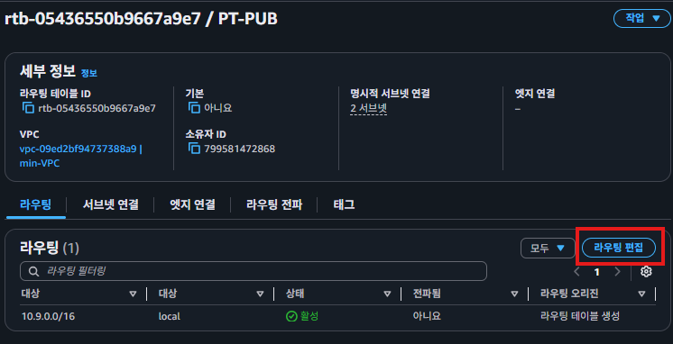 - Routing Table : VPC 내부/외부 트래픽 흐름 제어