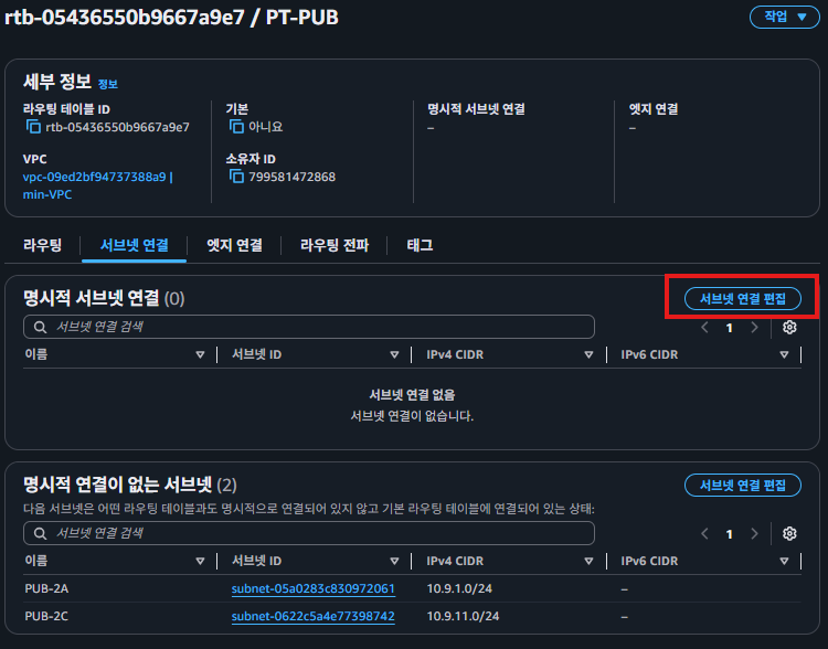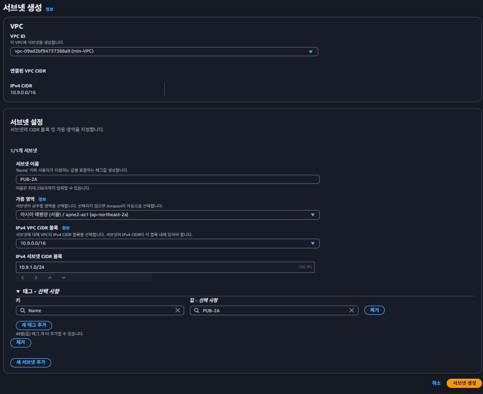 - Subnet : VPC를 더 작은 네트워크 단위로 나눠 사용