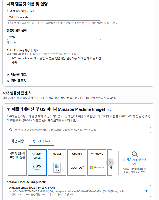 AWS에서 EC2 검색 → 시작 템플릿 → 시작 템플릿 생성