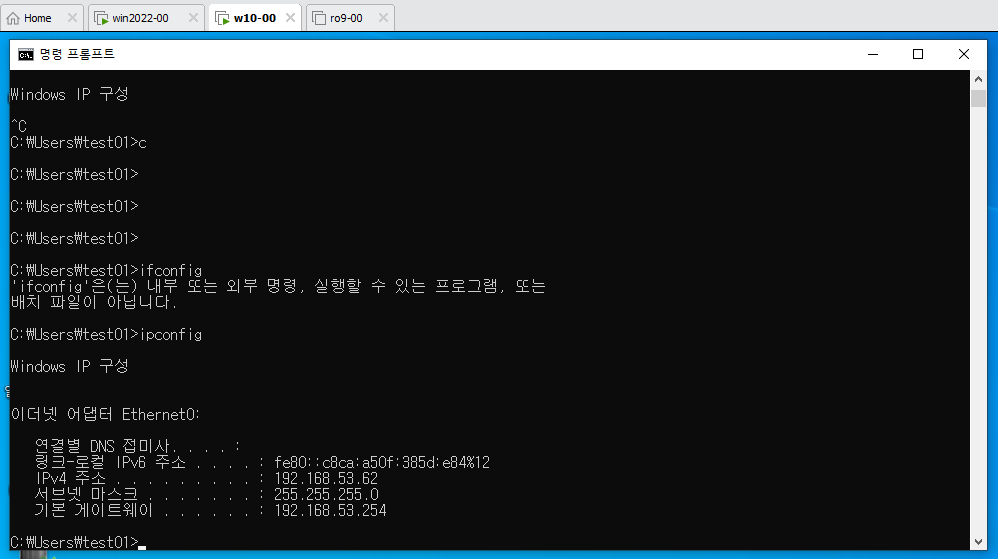 VMware를 통해 windows server 2022, 가상 윈도우10