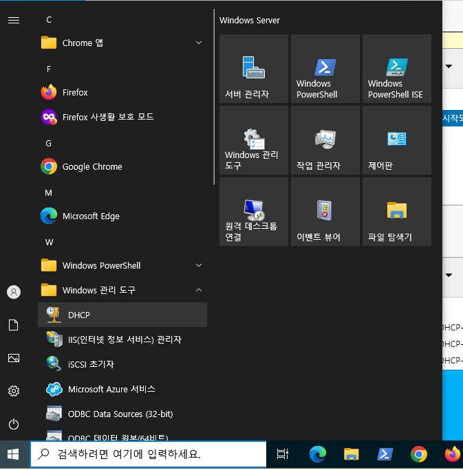 설정이 끝났다면 시작 → Windows 관리 도구 → DHCP