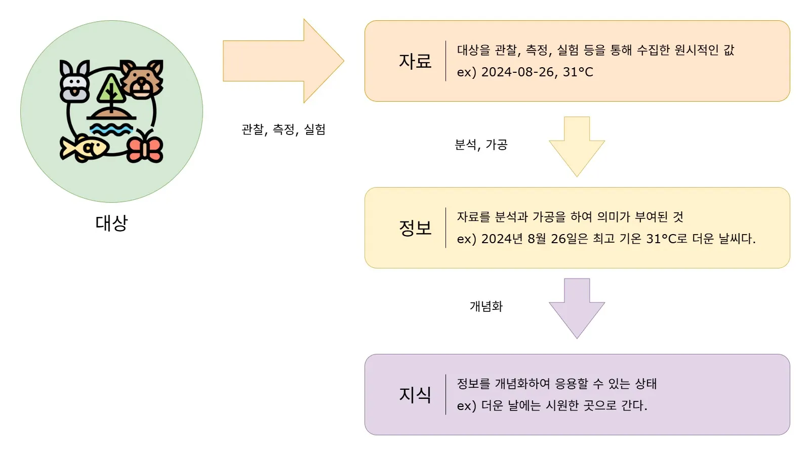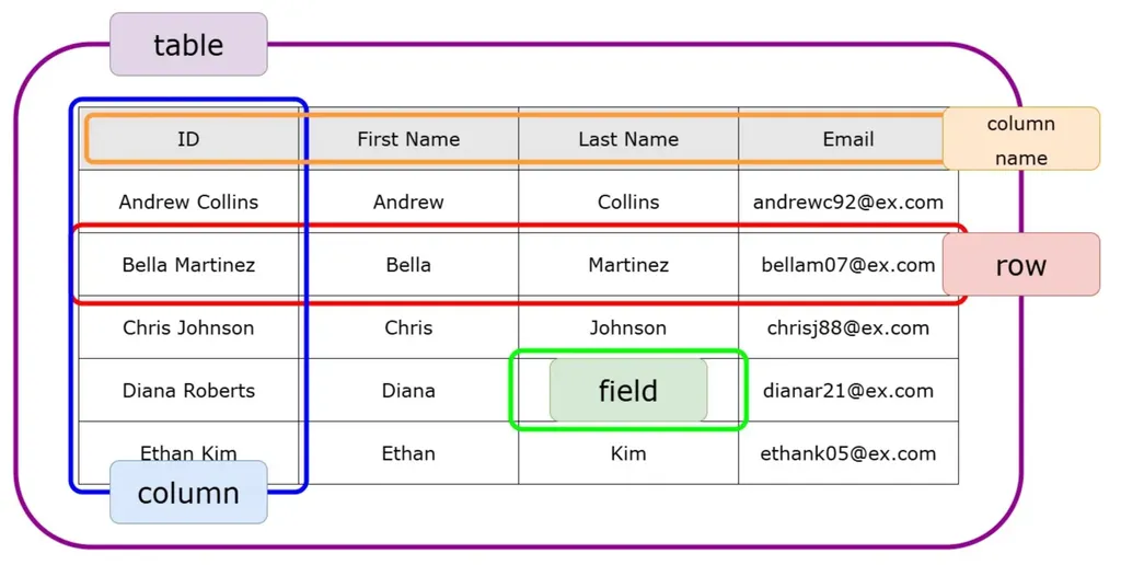 | Field (필드) | 대상의 속성에 해당 하는 값 표에서 한 칸 |
