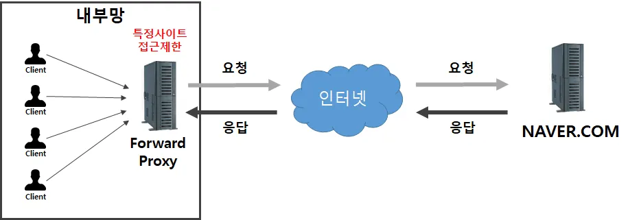 => 내부망에서 외부망으로 나가는 요청을 관리