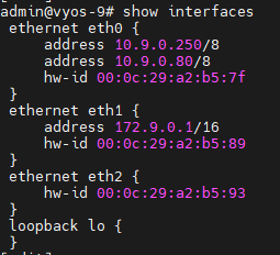 set interfaces ethernet eth1 address 172.9.0.1/16