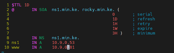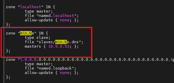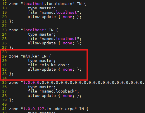 [root@localhost named]# named-checkzone min.ke /var/named/min.ke.dns