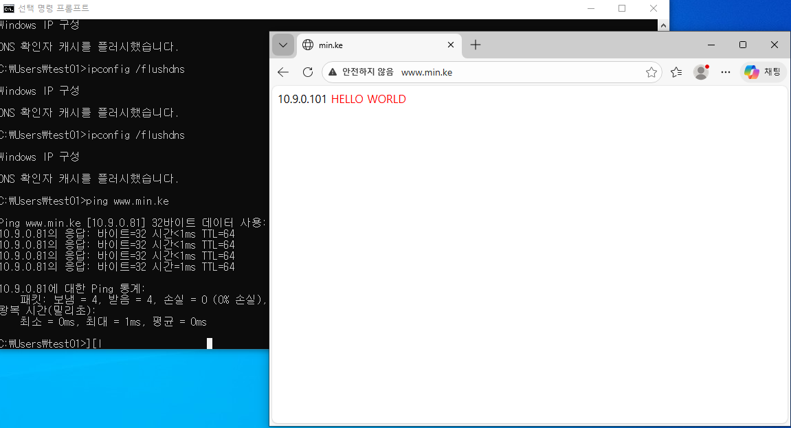 위 작업을 하고 다시 시작하면 아래와 같이 min.ke.dns 파일이 생긴 걸 볼 수 있다