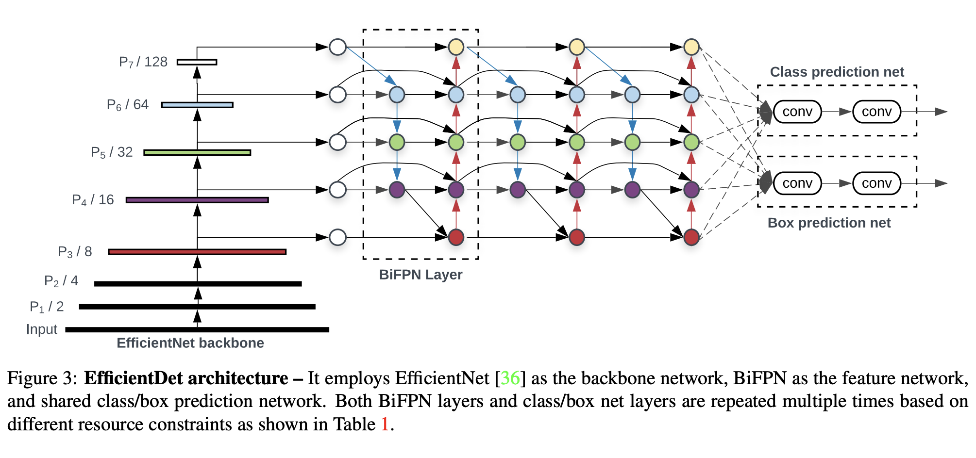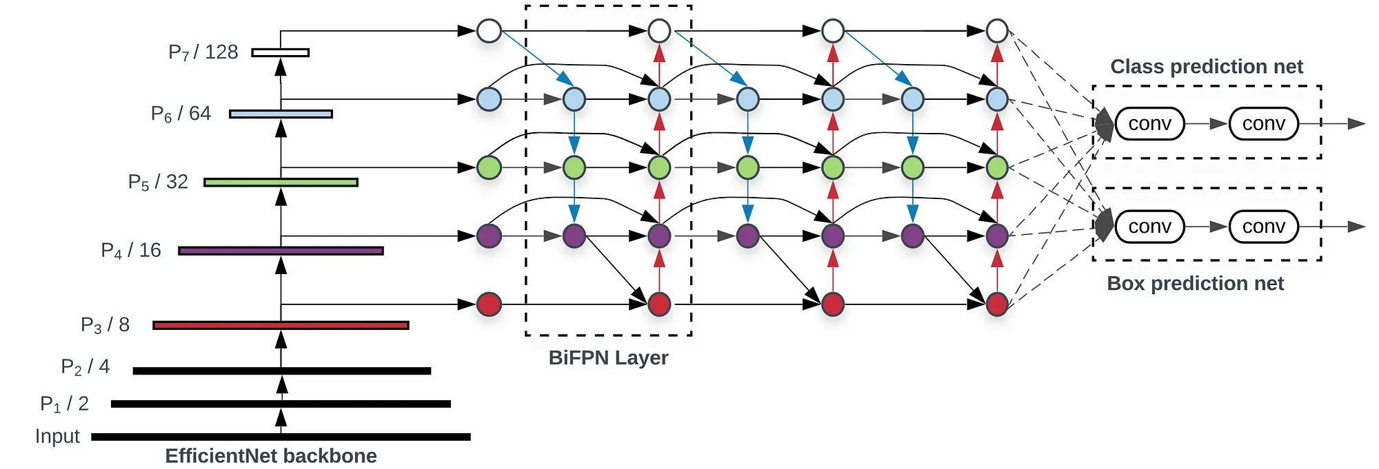 backbone, BiFPN, Box/Classification Network
