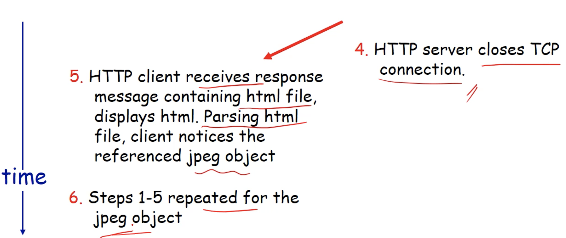- The connection is already closed, so the client does step 1-5 again for requesting JPEG object.