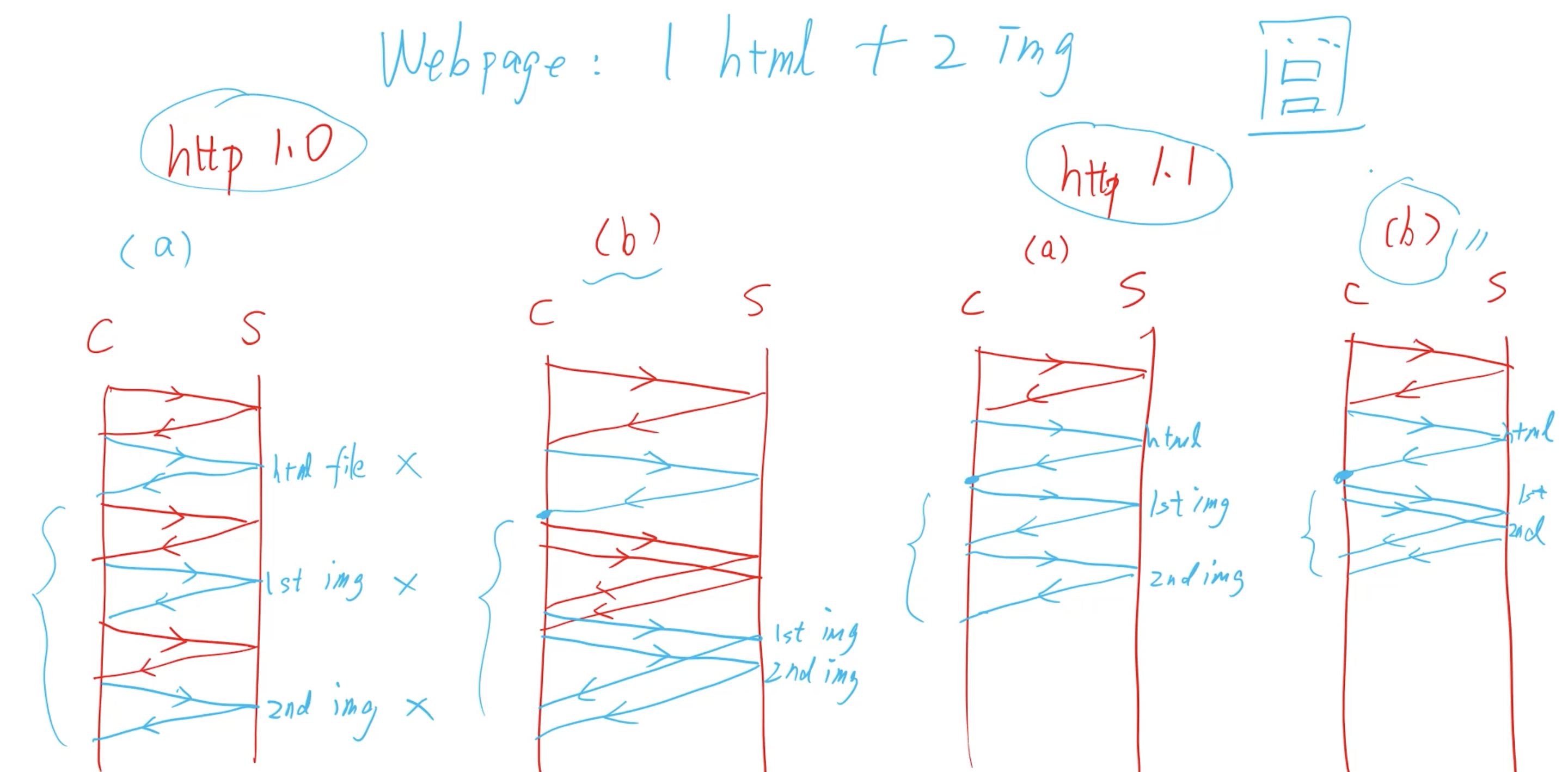 - HTTP 1.1 (b) also pipelines so that after parsing the html files and noticing the objects, the http requests for objects are sent back-to-back.
