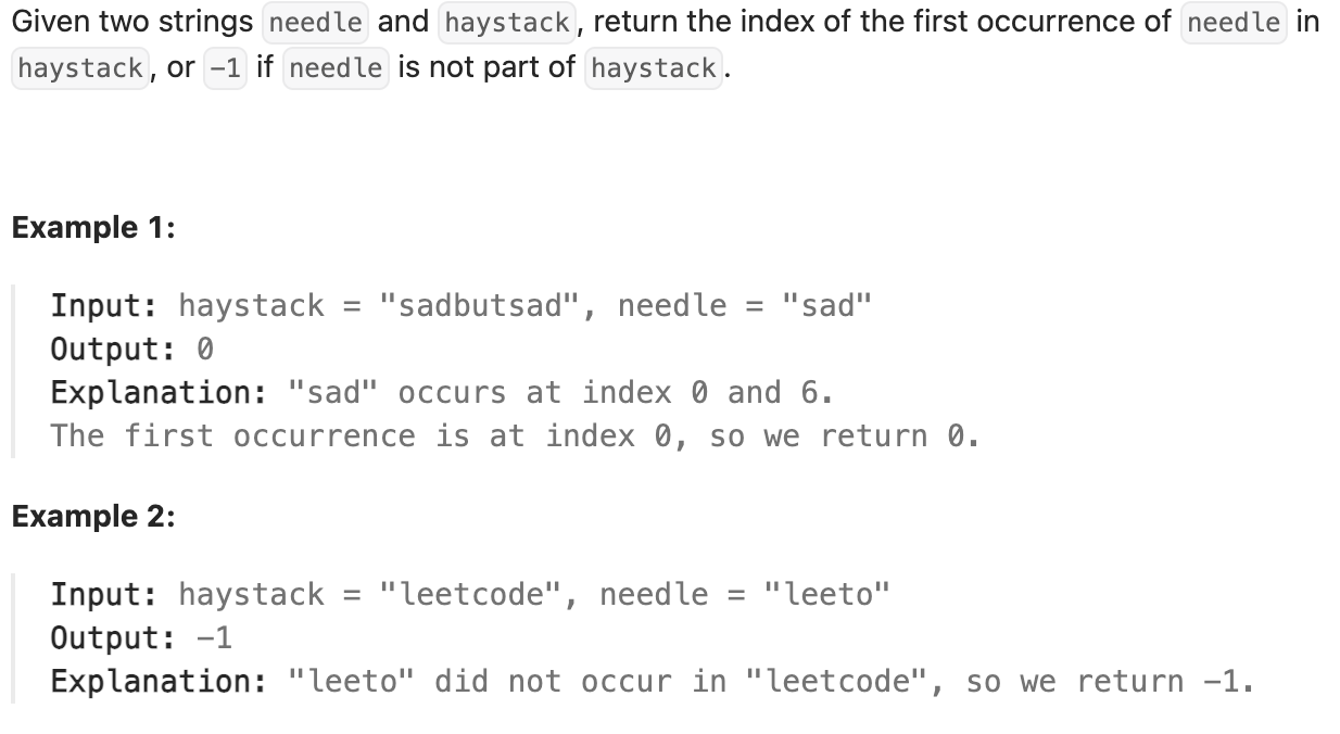 for (int i = 1; i <= haystack.length() - needle.length(); i++) {