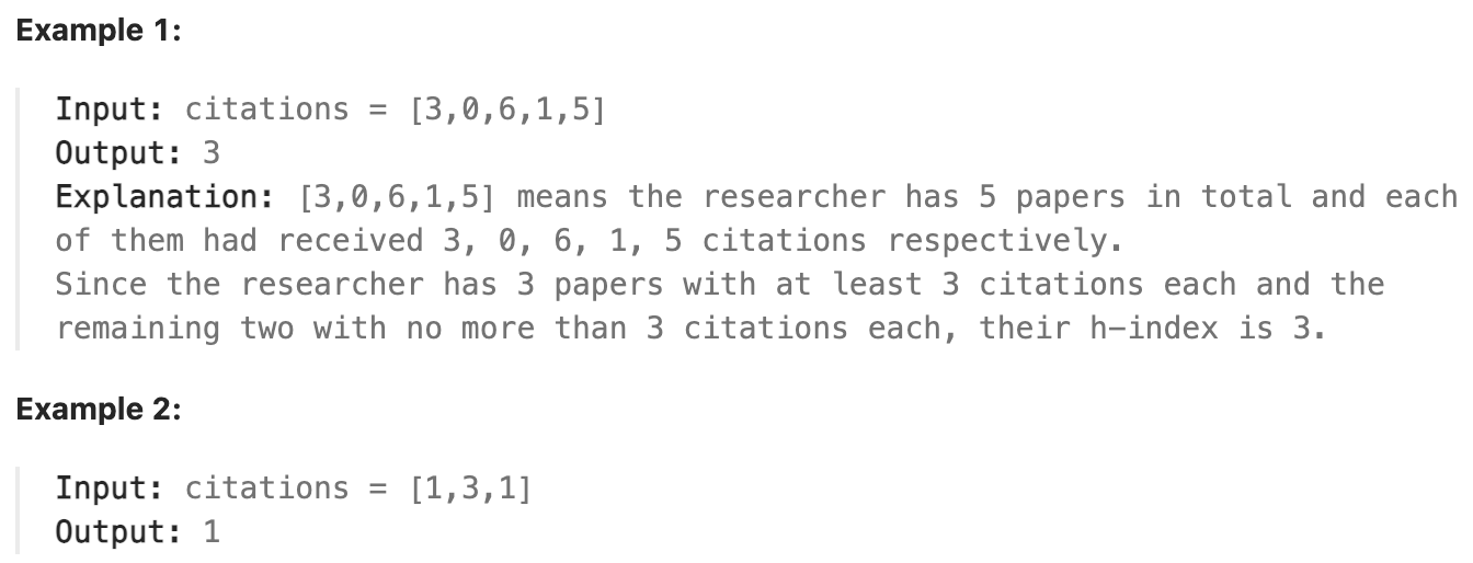 public int hIndex(int[] citations) {