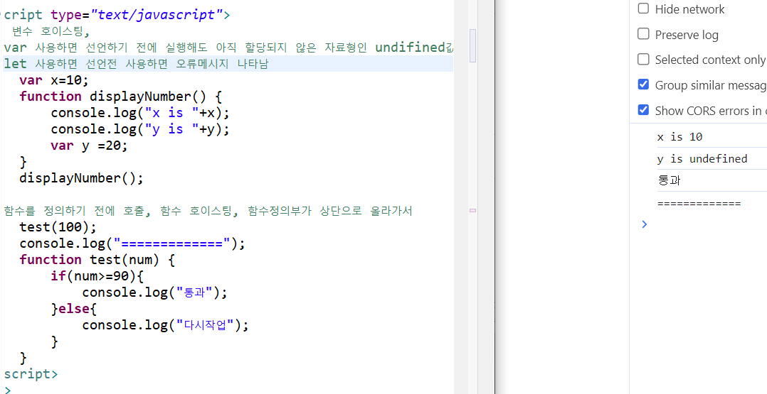 웹브라우저에서 자바스크립트를 해석할 때 함수선언부를 가장 먼저 해석한다.