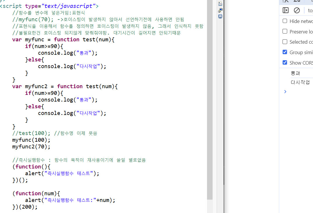 ⇒ 익명함수는 표현식으로 주로 사용하거나 매개변수에서 함수를 정의하고 바로 사용하는 경우 많이 사용