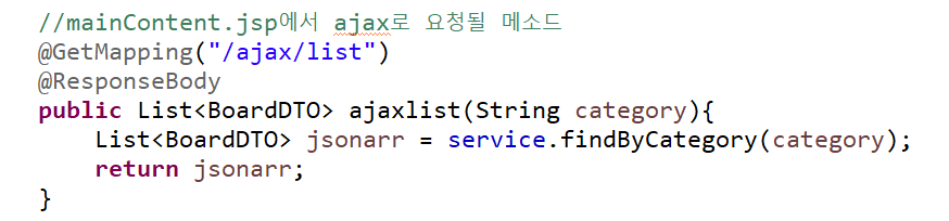 //스프링MVC(jackson-databind라이브러리와 MVC가 함께 자동작업을 처리)가 BoardDTO를 JSON문자열로 만들어서 리턴