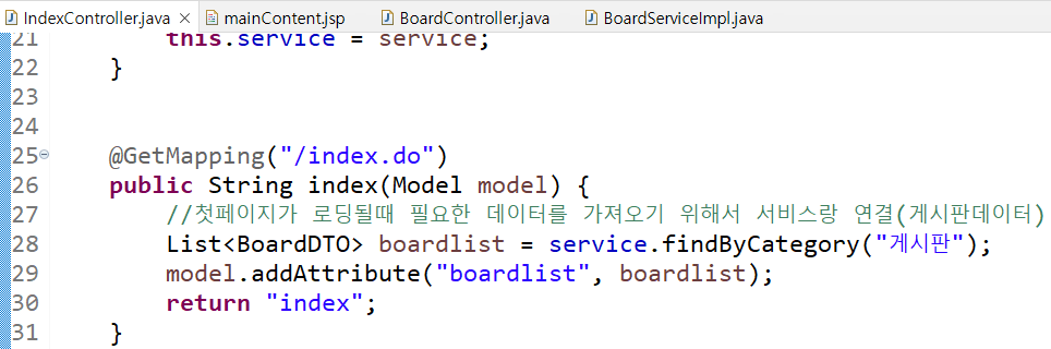 컨트롤러의 리턴타입은 조회한 전체 게시글목록의 List