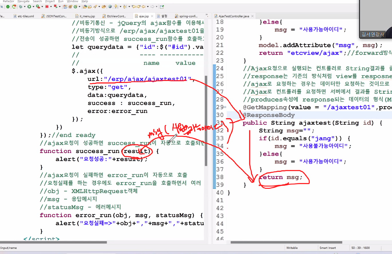 //Ajax 요청으로 실행되는 컨트롤러로 String 결과를 클라이언트로 전송