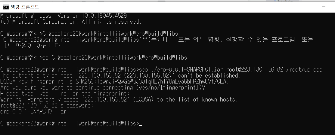 scp 복사할파일명(위치포함)(나의호스트) 대상위치(위치포함)(상대방호스트 : 계정@ip:/경로)