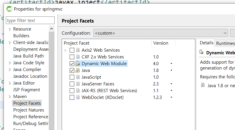pom.xml파일 변경(매번하던 버전변경, 밑쪽 서블릿)