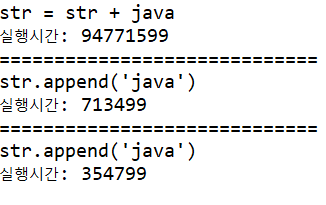 //String으로 객체를 만들고 문자열을 추가해서 실행시간을 측정