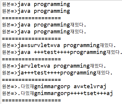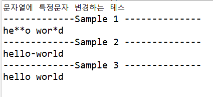 System.out.println("문자열에 특정문자 변경하는 테스");