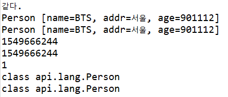 //Object클래스의 equals를 사용하지 않고 Person에서 오버라이딩한 메소드가 호출되어