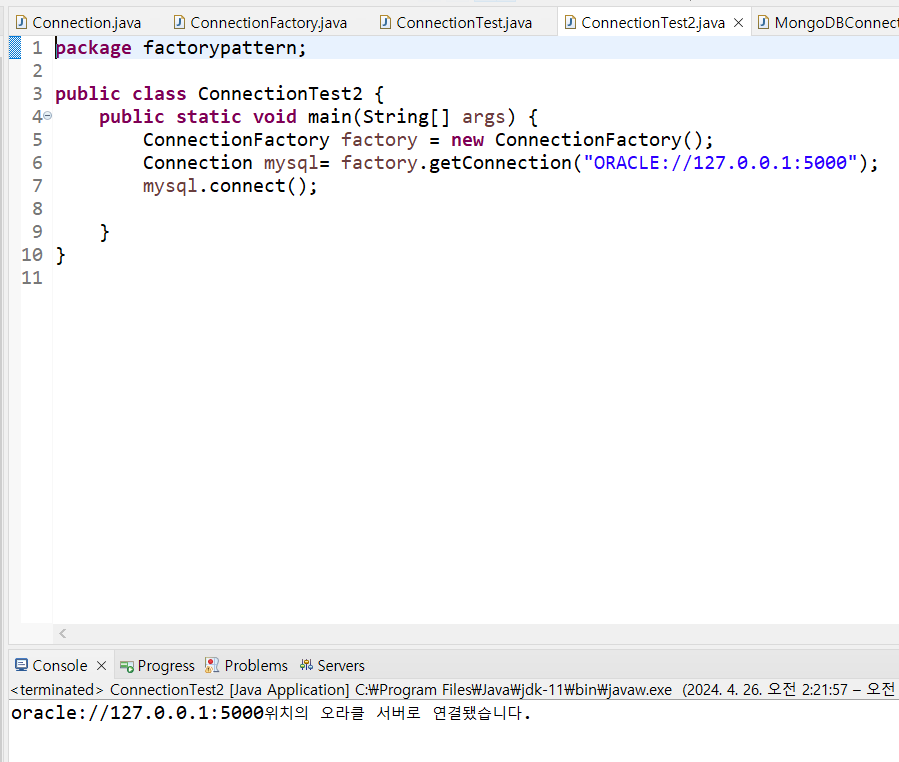 return new OracleConnection(url);//객체생성?