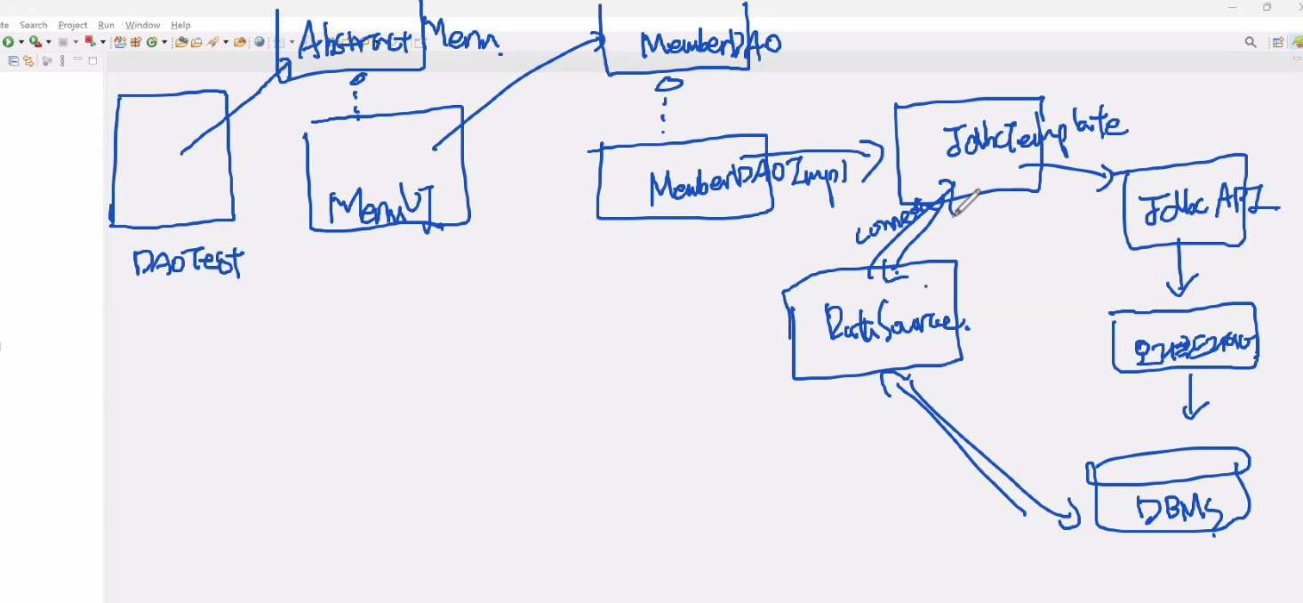 <bean id="ds" class="org.springframework.jdbc.datasource.DriverManagerDataSource"><!-- 커넥션객체만 관리 / DBUtil에서 하던일-->