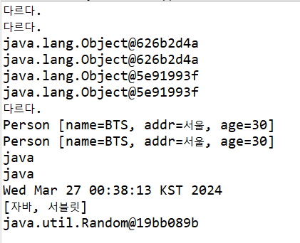 System.out.println(str.toString());//세임세임~ 투스트링 생략되어있는것뿐, 얘는 이미 오버라이딩 api에서 되어있음..그래서