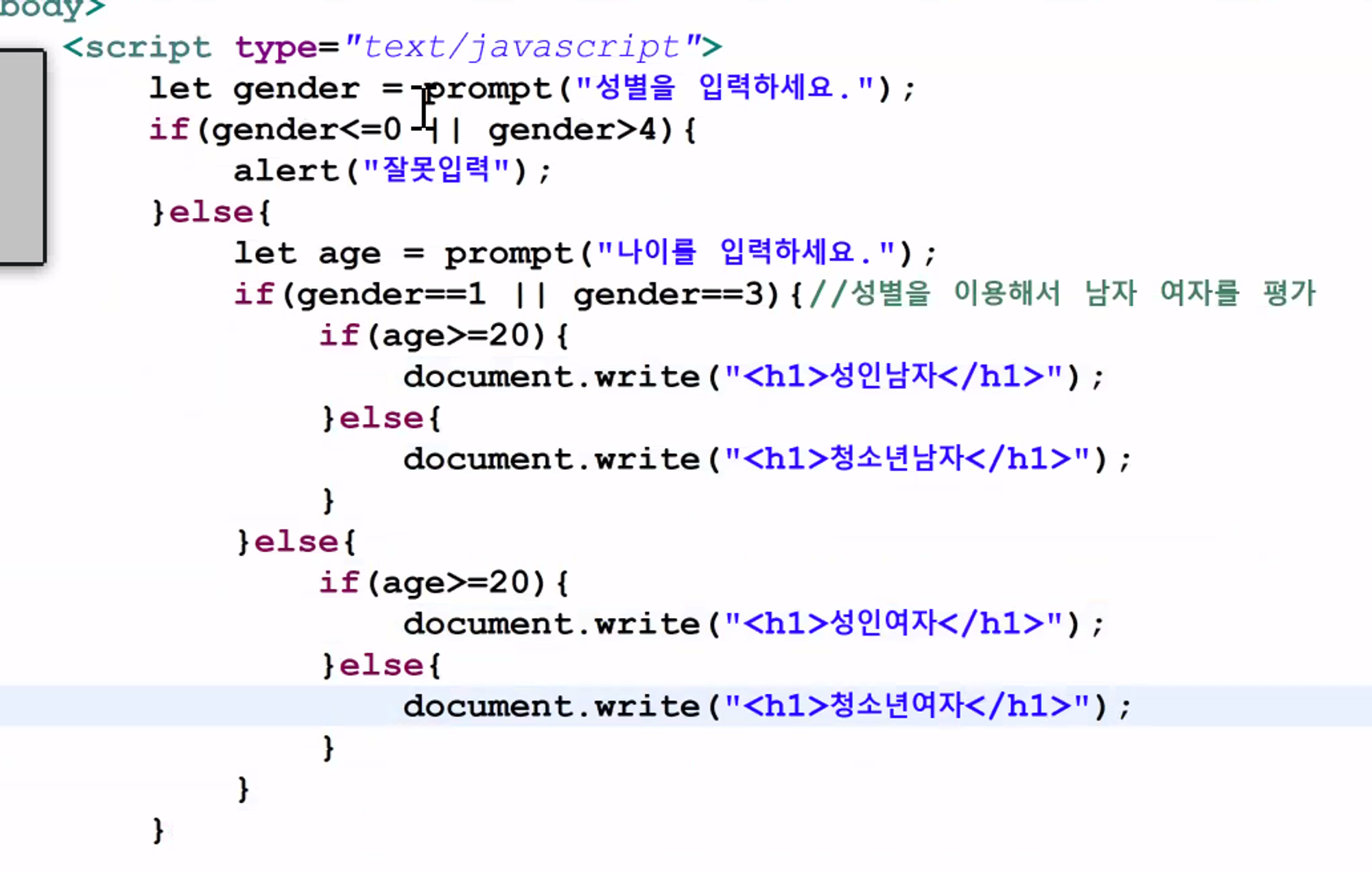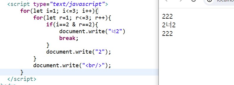 //document.write("<h2>자바스크립트<h2>"); //num이 트루니까 무한루프됨 오류뜸