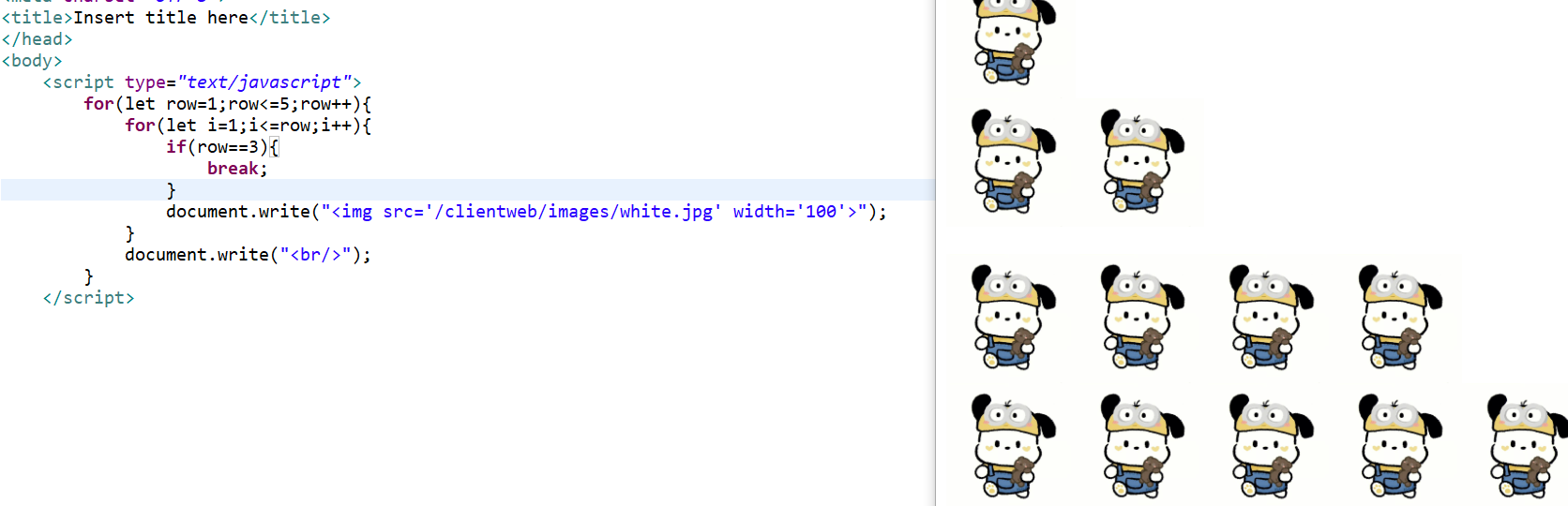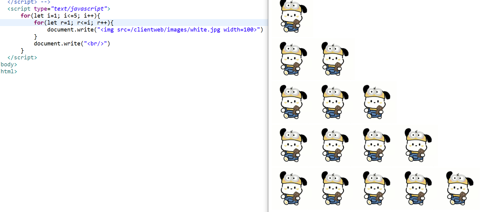 둘째줄 i=2일때 r<=2라서 둘째줄 2개 이미지 출력