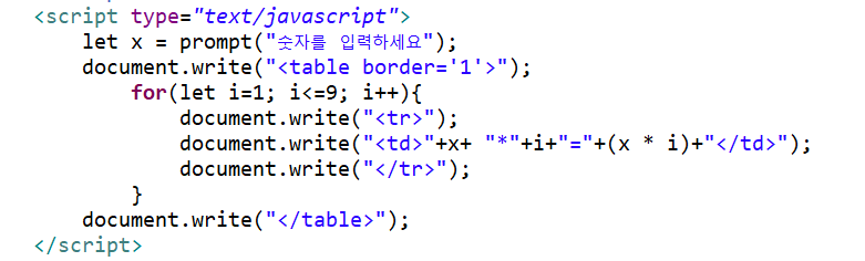 exam : prompt로 입력받은 구구단을 출력하세요