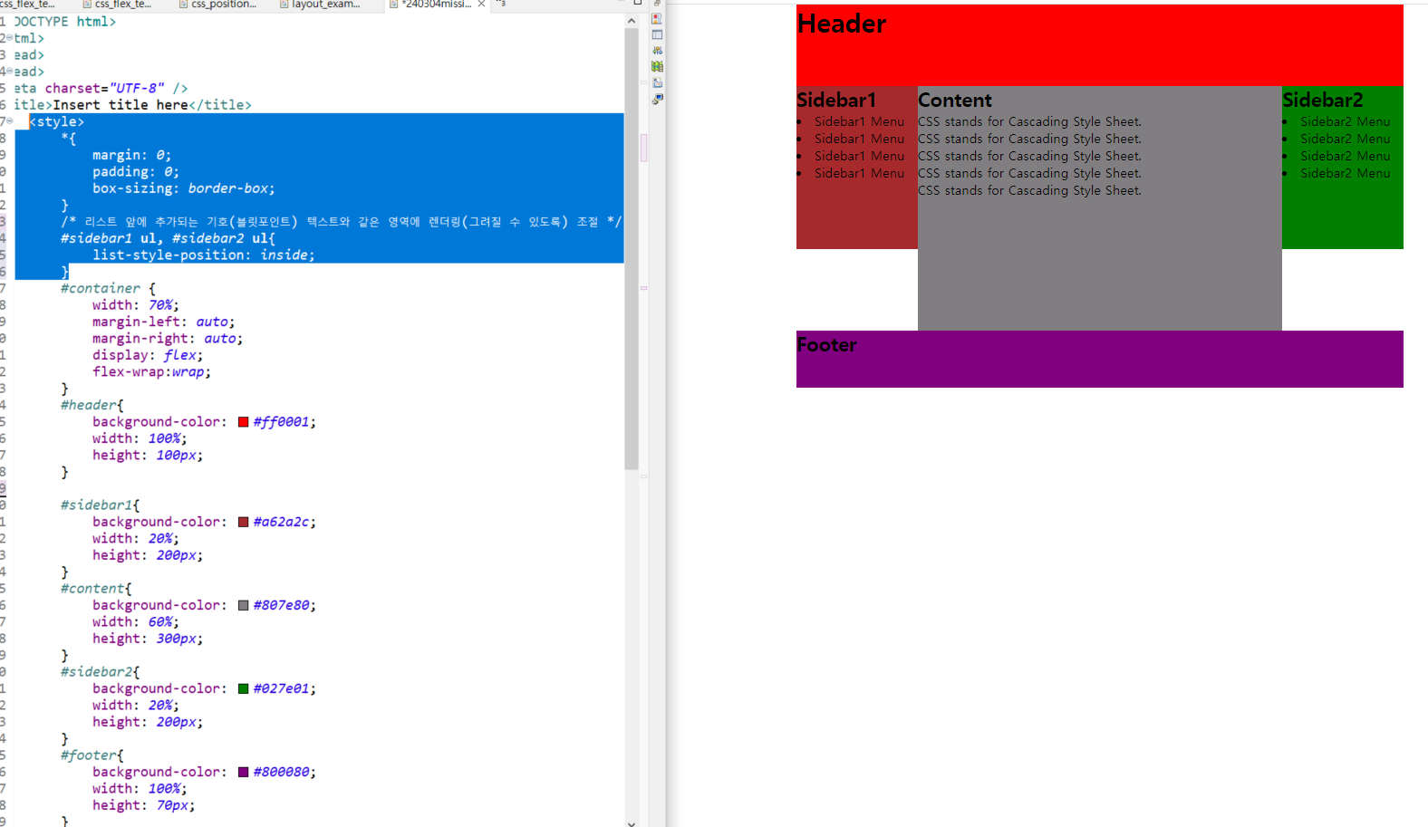 전날 과제 (flex 적용) 드래그 된 부분 수정함