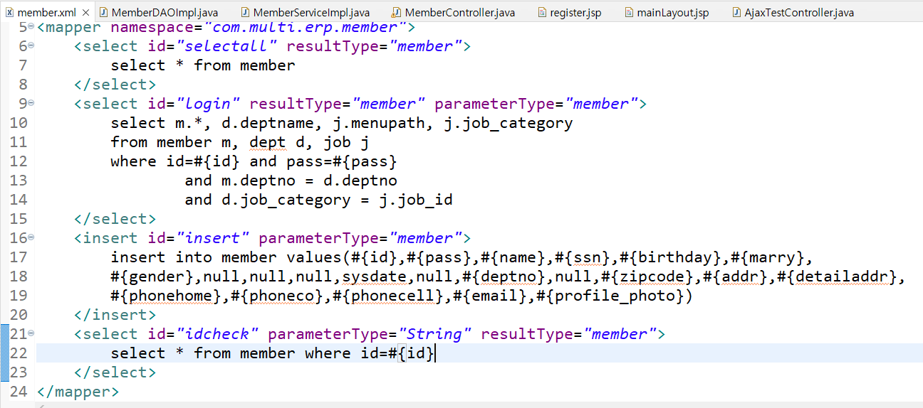 MemberDTO user = sqlSessionTemplate.selectOne("com.multi.erp.member.idcheck", id);