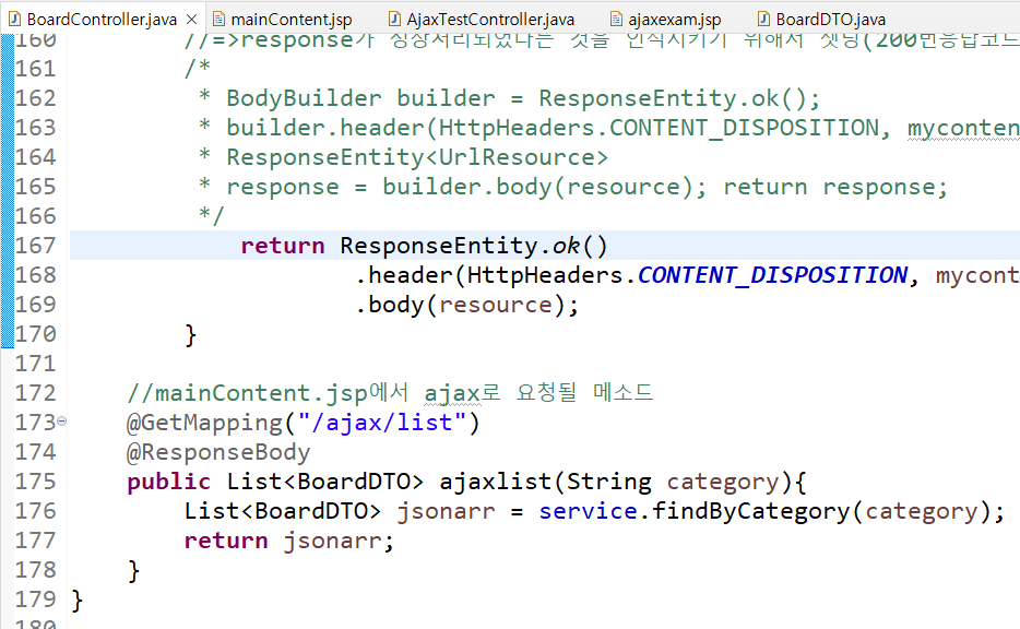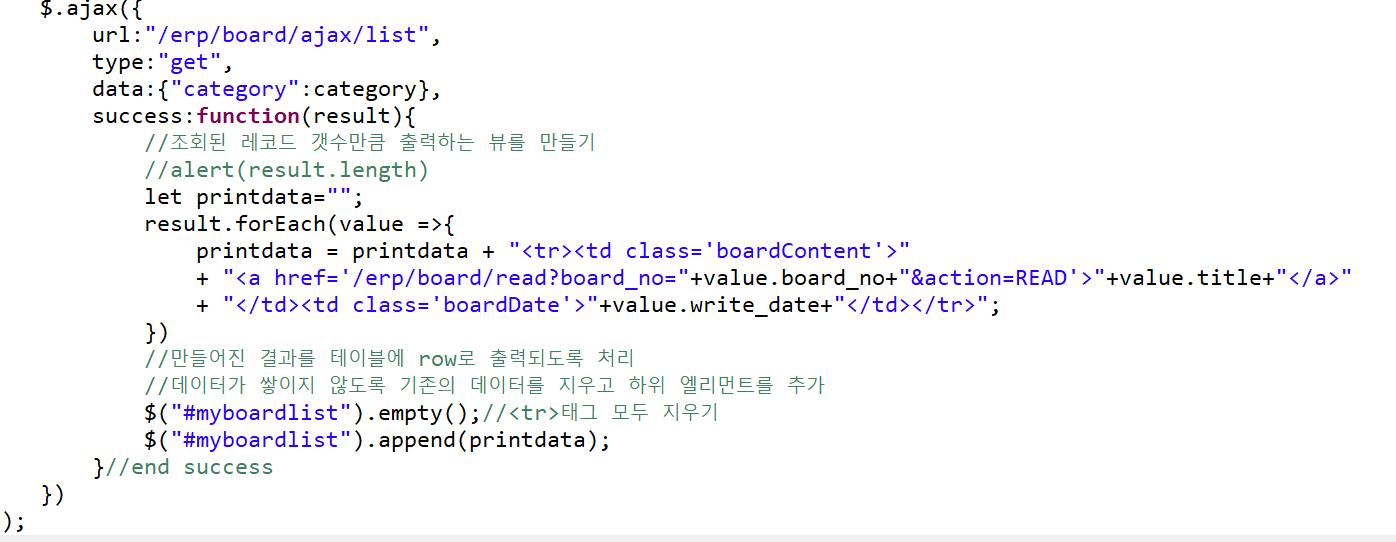//=>해당카테고리데이터를 DB에서 조회해서 myboardlist에 <tr>로 출력되도록 Ajax로 처리하기