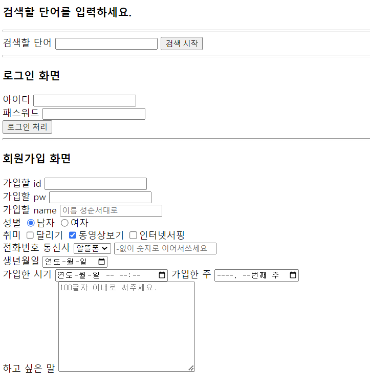 <!-- name 설정하니까, 주소창에 뜸, 전송됨 -> 이후 DB와 연결 -->