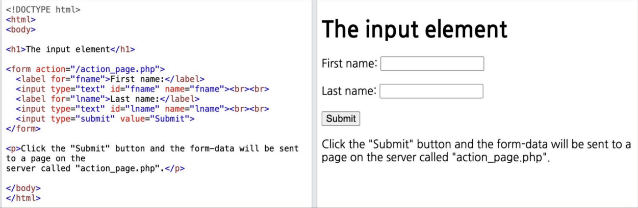 폼태그를 이용해서 사용자가 선택한 정보를 서버로 넘길 때 필요한 값들을 정의할 용도로 사용