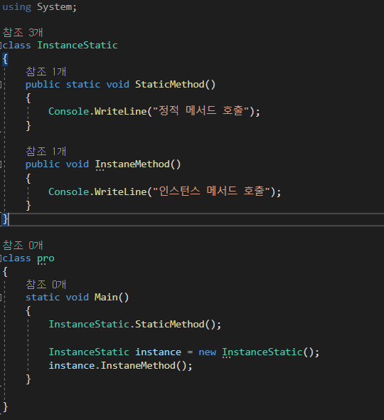 <예시_2>과 같이 static을 선언하는 경우 인스턴스 생성없이 바로 호출하여 사용할 수 있다.