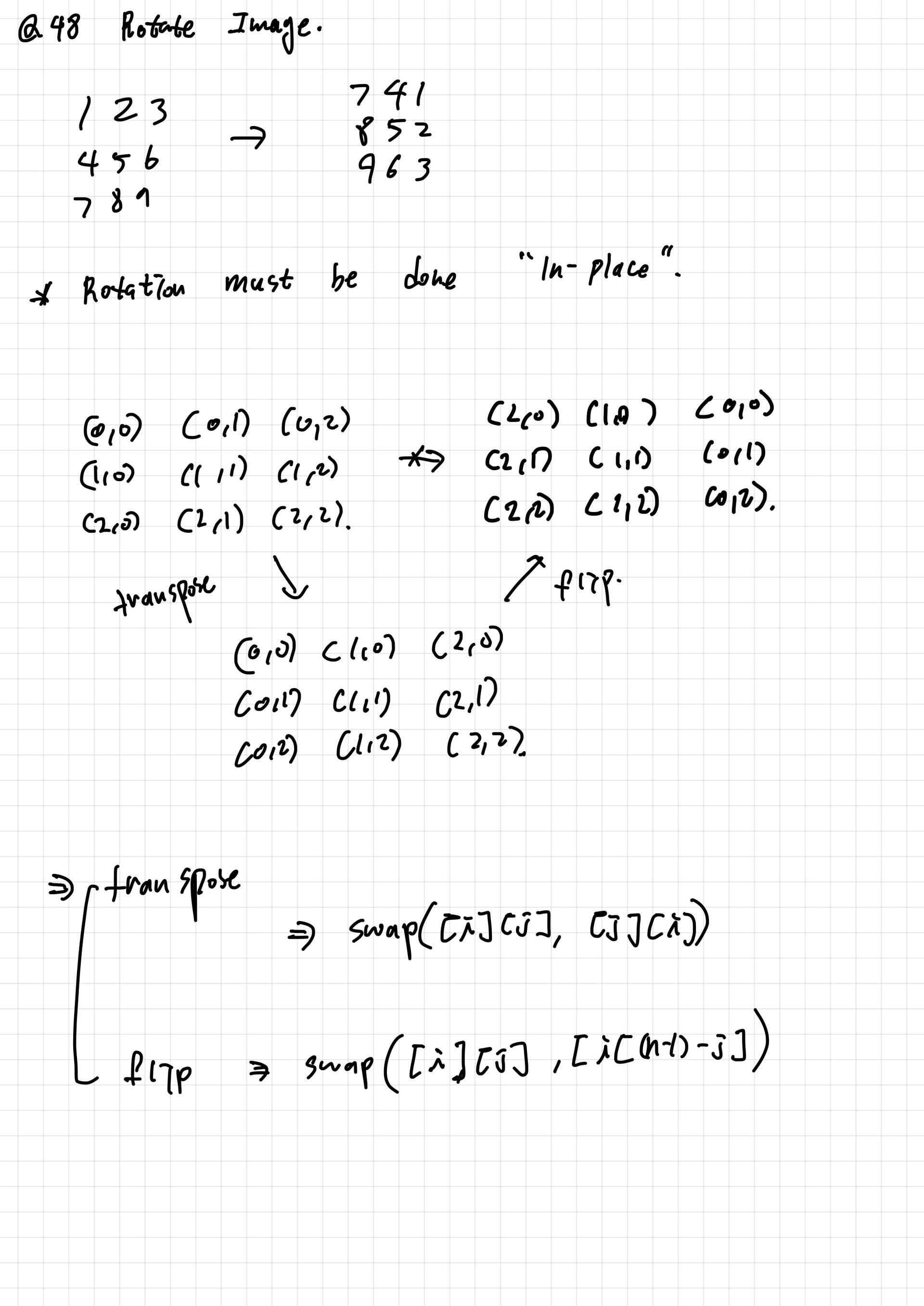 You have to rotate the image in-place, which means you have to modify the input 2D matrix directly. DO NOT allocate another 2D matrix and do the rotation.