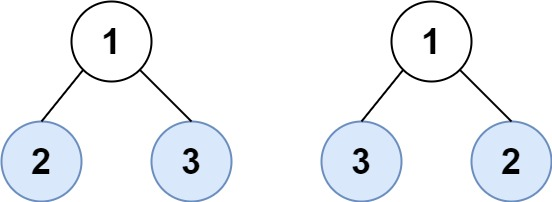 Input: root1 = [1,2,3], root2 = [1,3,2]
