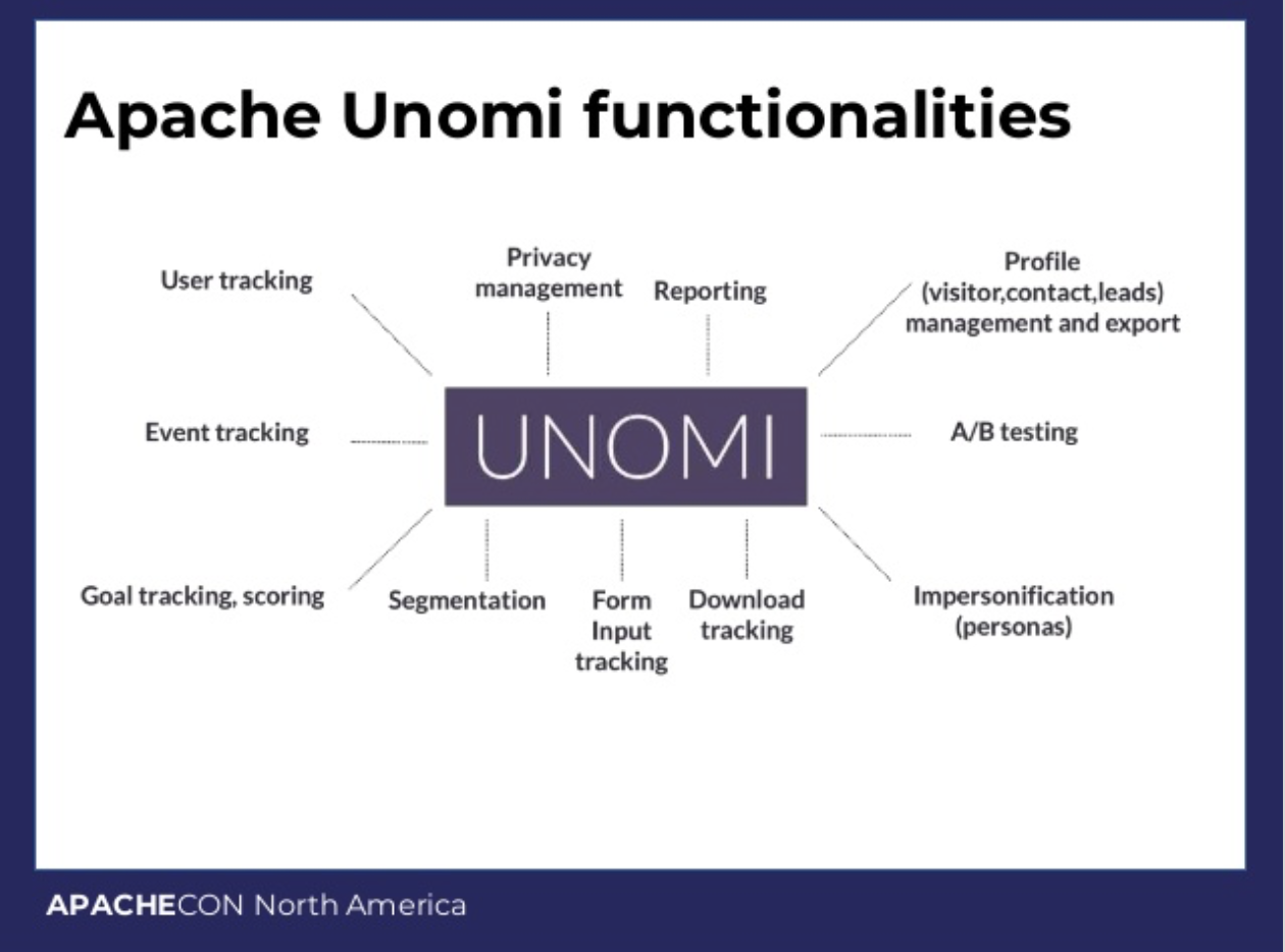 Apache Unomi는 고객, 리드, 방문자 등의 데이터를 관리하고, 개인정보 규범들(ex: GDPR)을 준수하며, 고객의 경험을 개인화 하는 자바 오픈소스 고객데이터플랫폼(CDP- Customer Data Platform)이다.