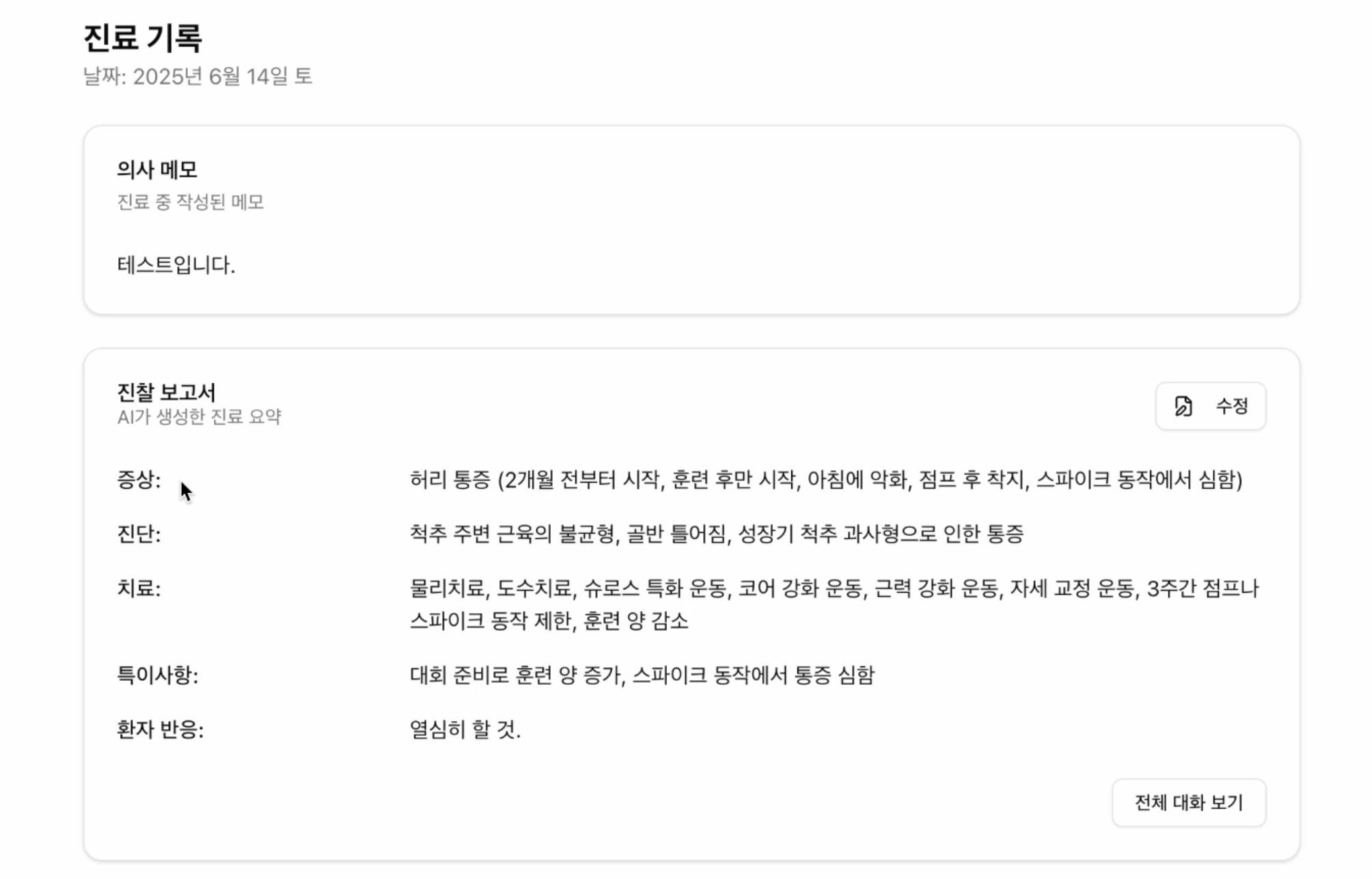 "content": [{"type": "text", "text": f"[진료 내용]\n{treatment_text}"}]