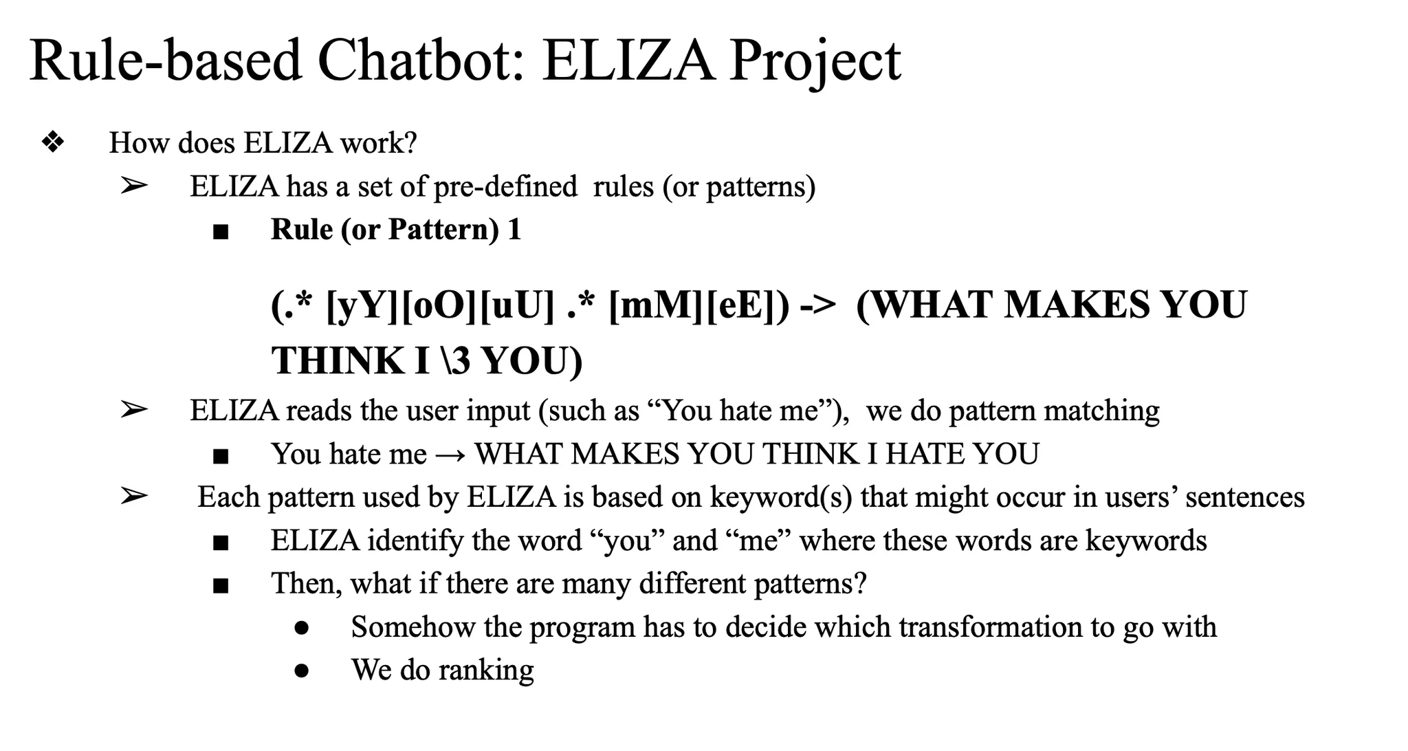 - ELIZA는 현재 입력에 대한 특별한 규칙이 없으므로, 메모리에서 이전에 저장된 문장을 출력