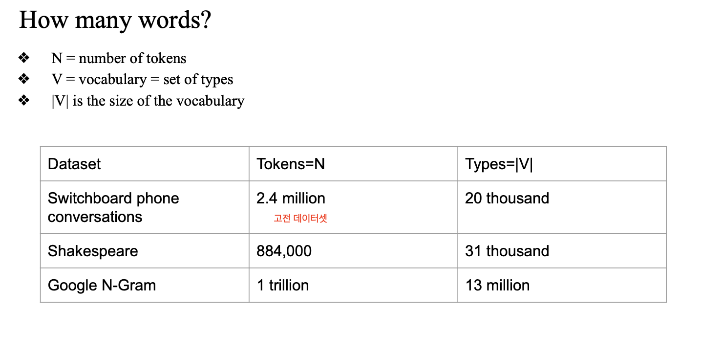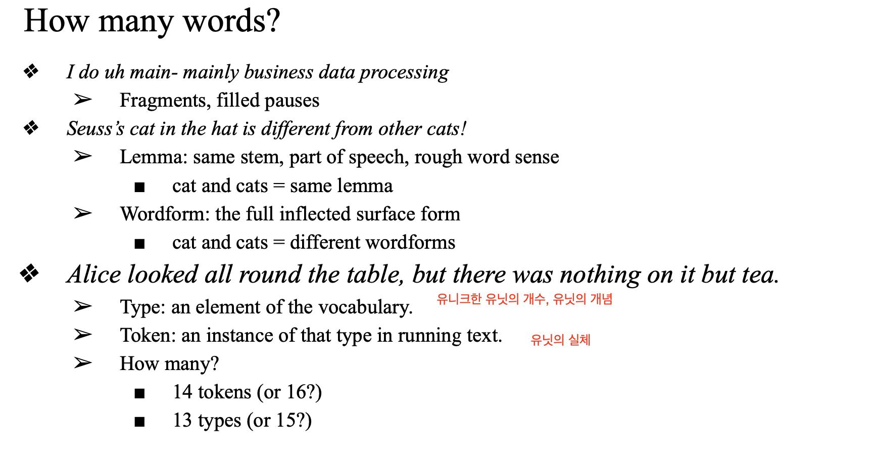 vocabulary construction 을 하는데 이 때 token 과 type의 개념이 필요