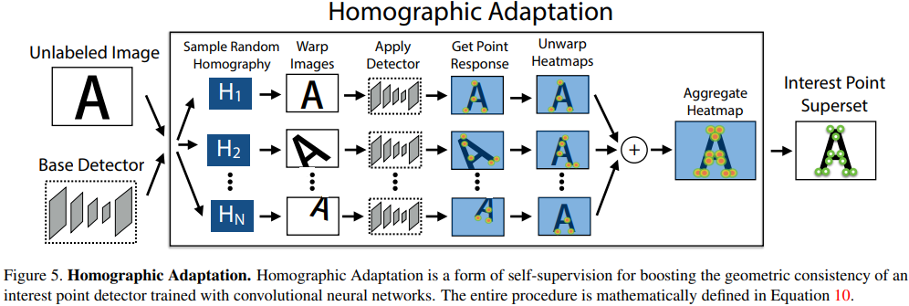 - Unlabeled image를 랜덤한 homography로 와핑하여 여러 이미지를 만든다.