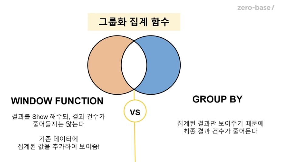 그러니까 group by 처럼 집계된 값만 보여주는 게 아니라, 새로운 컬럼을 추가해서 그 안에 우리가 집계하고자 했던 값을 넣어서 보여주는 형태라고 보면 될듯